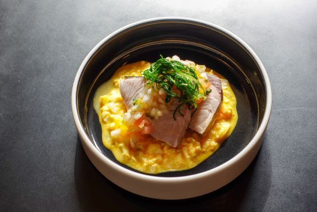 コラボメニューをプロデュースした鈴木浩治さん 「アラカルトのひとつトスカーナ料理のカチュッコは、お酒をあまり使わずに野菜の甘みや魚介の旨み、トマトで丁寧に作り上げました。幅広い層のお客様がお越しになると思いますので、ブレのないきちんとした料理を楽しんでいただければと思います」と、鈴木さんからメッセージが。
