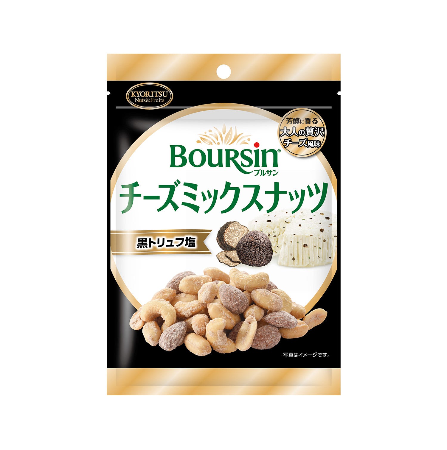 フレッシュチーズ「ブルサン」の味を再現するため、贅沢にクリームチーズパウダーを使用し、チーズ本来の豊かな風味を実現。イタリア産黒トリュフの芳醇な香りと、香ばしくローストされたナッツが重なり合うワンランク上のスナック。仕事終わりの晩酌を格上げする、こだわりの一品。