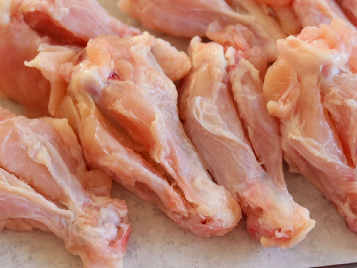 ②鶏手羽元は骨に沿って切り込みを一本入れる。