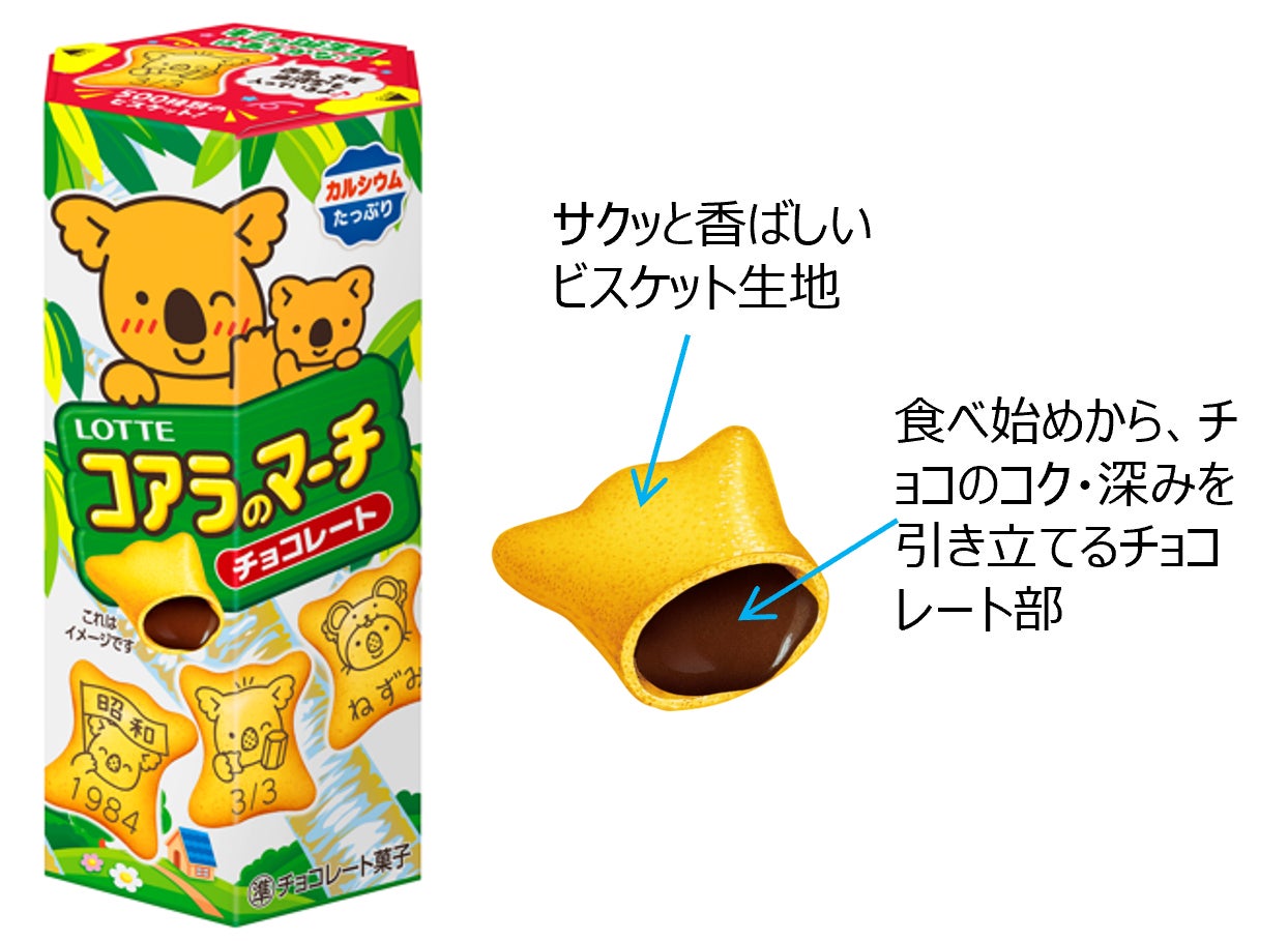 2024年に40周年記念として実施した「名前入り」企画で反響を呼んだ同商品。今回普遍性をさらに追求し、誰にも必ず当てはまる「誕生日」「西暦」「干支」「血液型」を絵柄に採用した。絵柄は全500種類にのぼり、その組み合わせは約17万通り。本企画で“自分だけのコアラ”を組み合わせることで、より深いコミュニケーションツールへと進化を遂げた。家族や友人と「自分や推し探し」で盛り上がる新しい喫食体験を提供する。また、発売43年目を迎えた「コアラのマーチ」を大幅にリニューアルし「コアラのマーチ<チョコ>」「コアラのマーチ<全粒粉in旨ビス>」を3月17日より全国で発売することが決定。本商品は、「大人もおいしく楽しみたい」という声を受け、子どもはもちろん、大人にももっとおいしいと感じてもらえるよう、ビスケットの食感とチョコレートの味わいを見直した。また、パッケージデザインも刷新。発売当初からパッケージの正面で親しまれてきた“リアルコアラさん”は今回を機に卒業し、今後は“コアラのマーチくん”がブランドの“新しい顔”として、商品を彩る。