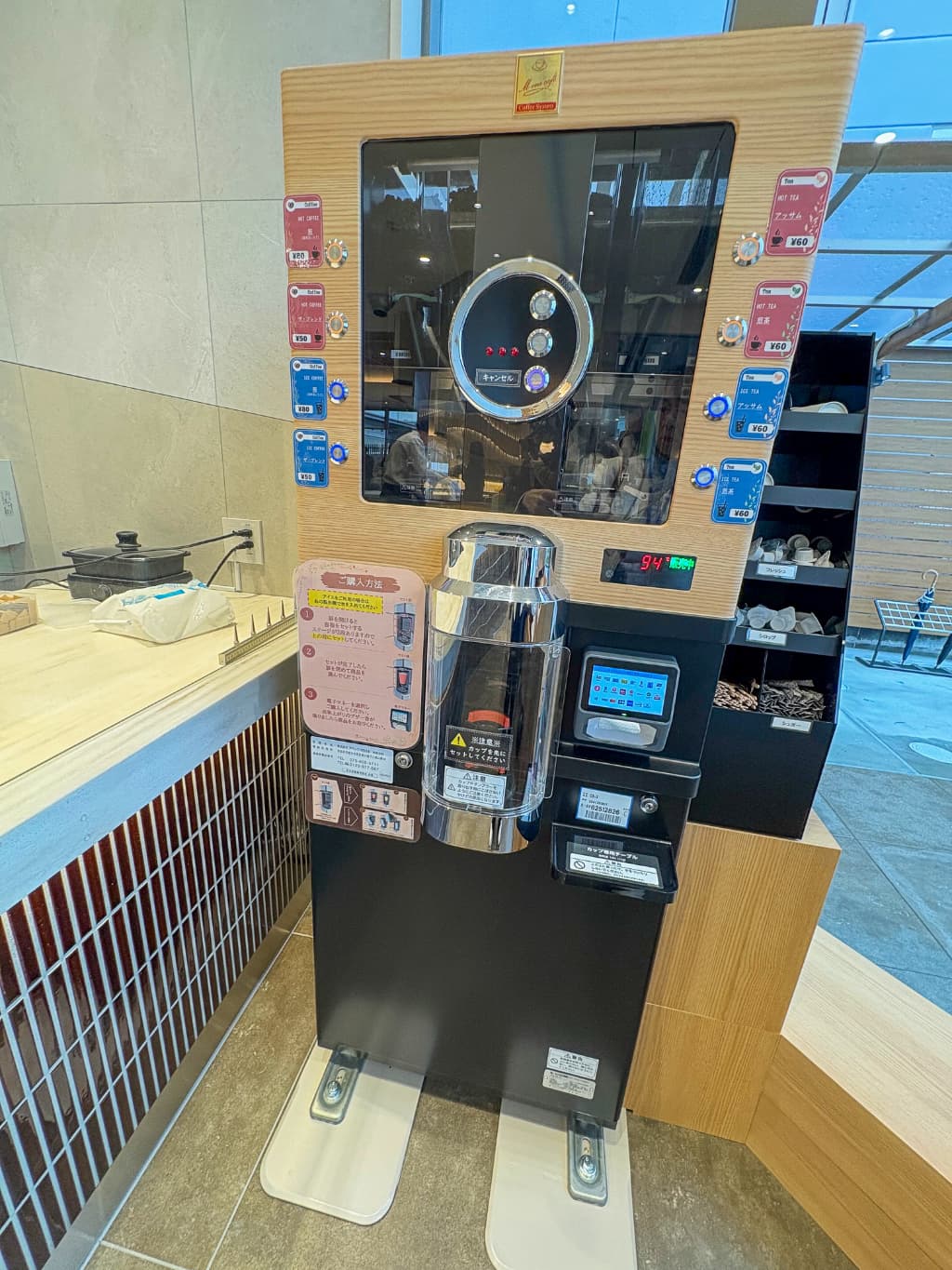 店内にはドリンクの販売機もあるので、購入したお菓子とともにショップの裏手にあるテラス席で、ひと息つくのもおすすめです。