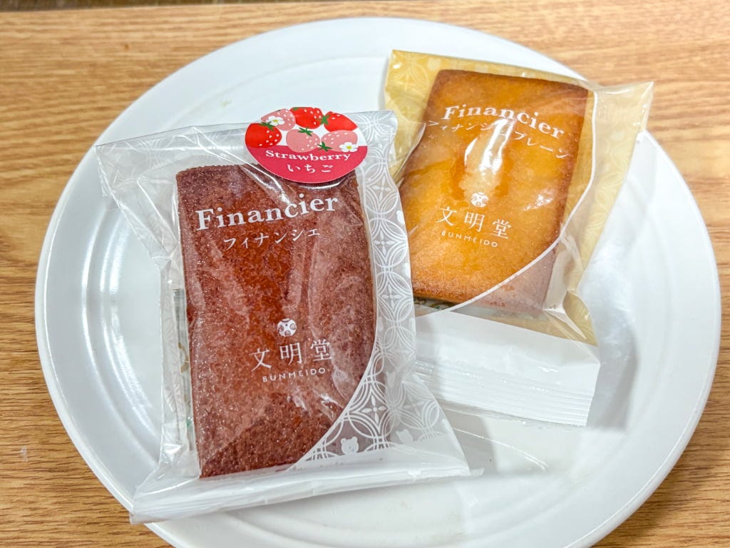 「フィナンシェ(プレーン)」238円のほか「フィナンシェ(いちご)」も登場 「伏見カステラ工房の三笠山(あんバター)」には、北海道産大納言小豆のうまみを生かすカルピス(株)バターを使用。仔グマの焼印がトレードマークです。「伏見カステラ工房の三笠山」も、できたてをいただけるのはここだけです。