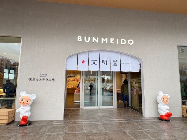 1900年に長崎で創業した文明堂。東京に進出後、「文明堂東京」として100年以上にわたりカステラを含む和洋菓子を販売してきました。新たにお目見えした「文明堂 伏見カステラ工房」は、トレードマークの仔グマちゃんたちが出迎えてくれます。