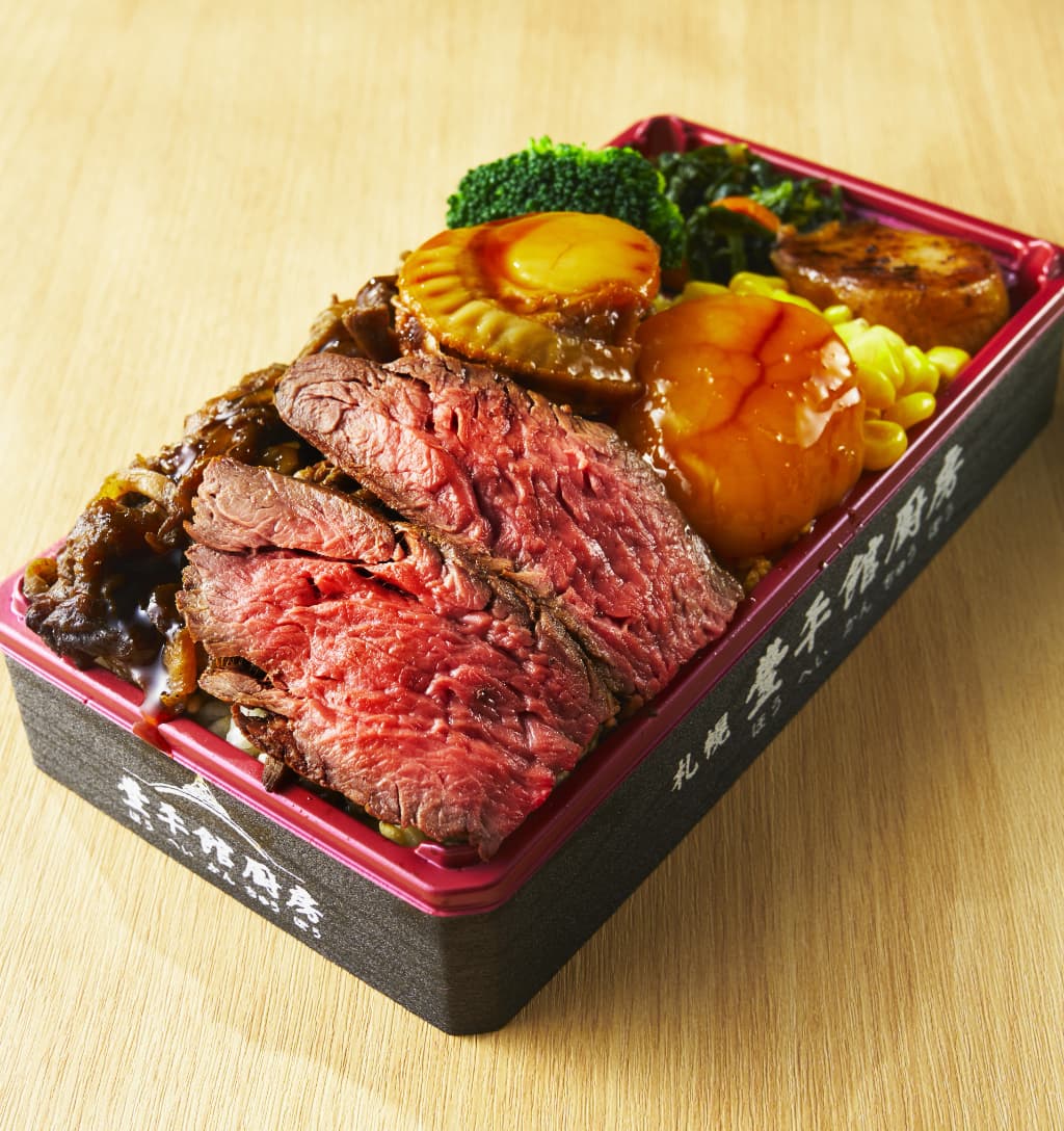 「北海道札幌豊平館厨房」の「北海道産牛ヒレ昆布熟ステーキ・北海道産ホタテの食べ比べ弁当」(3,456円)※各日限定100