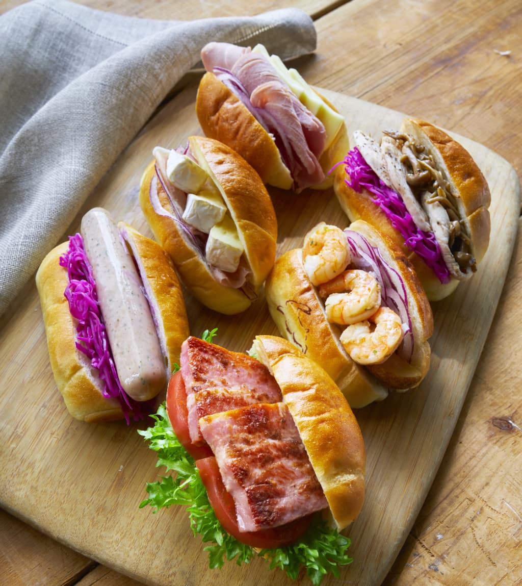 「雪うさぎベーカリー」の「塩パンサンド(北海道じゃがいもとガーリックシュリンプ)」(648円)ほか ※各限定50、4月15日(水)~4月20日(火)出店