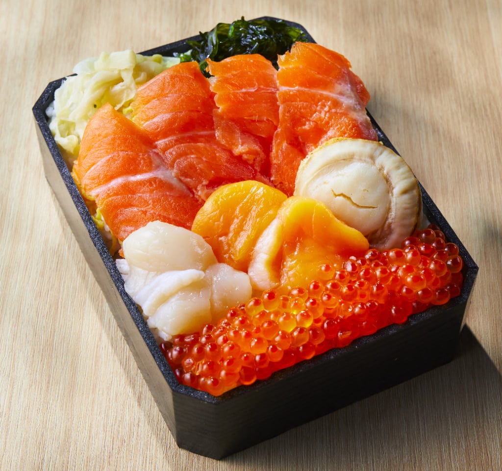「北海鮮 海の里」の「道産サーモンと帆立の饗宴 イクラを添えて」(2,808円)※各日限定100