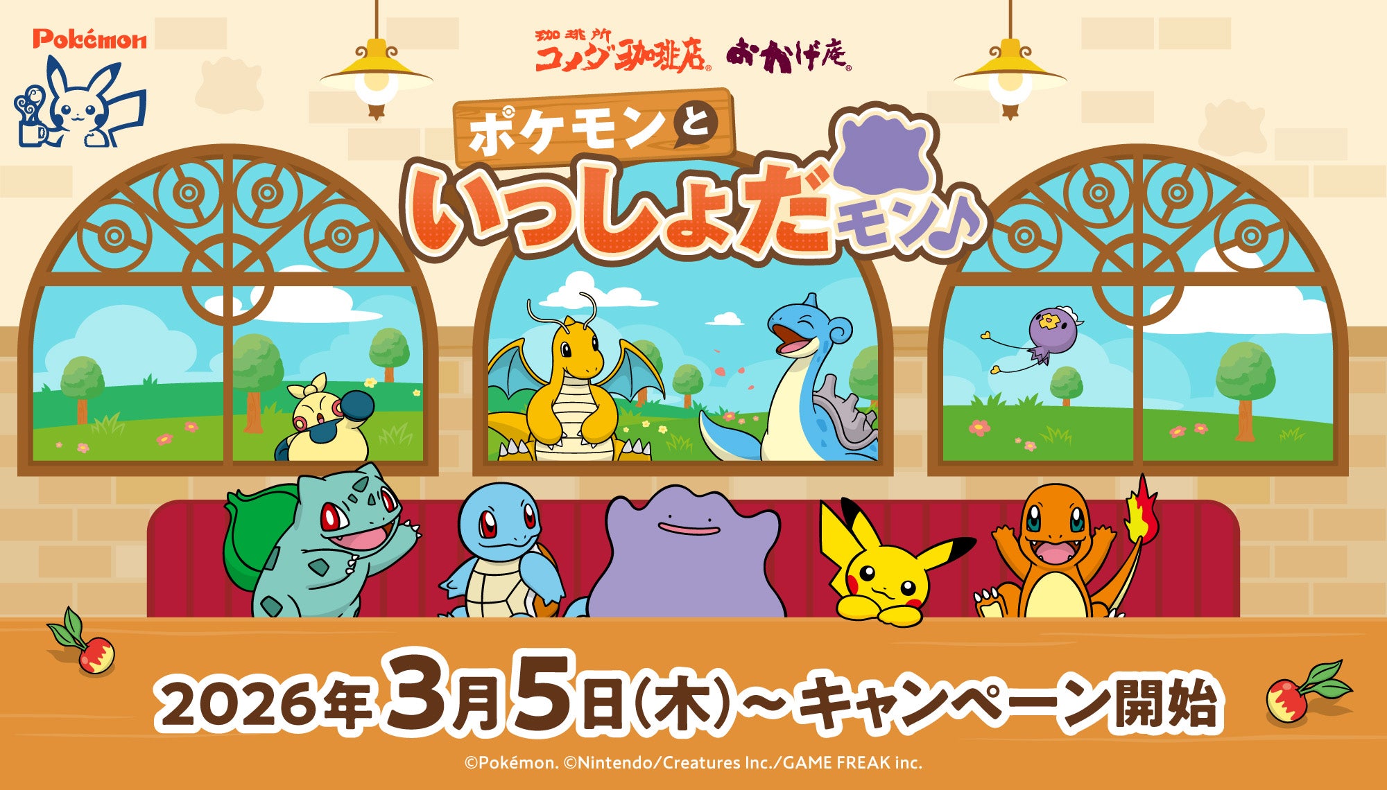 コメダ珈琲店とおかげ庵では、4月9日から「ポケモンといっしょだモン◆」(※「◆」は正式には「音符マーク」)をテーマにしたキャンペーン第2弾が実施される。