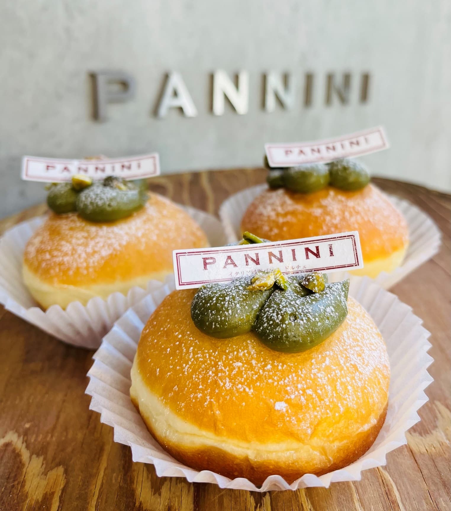 【実演】「パンニーニ」の「ボンボローニ ピスタチオ」(1個/680円)