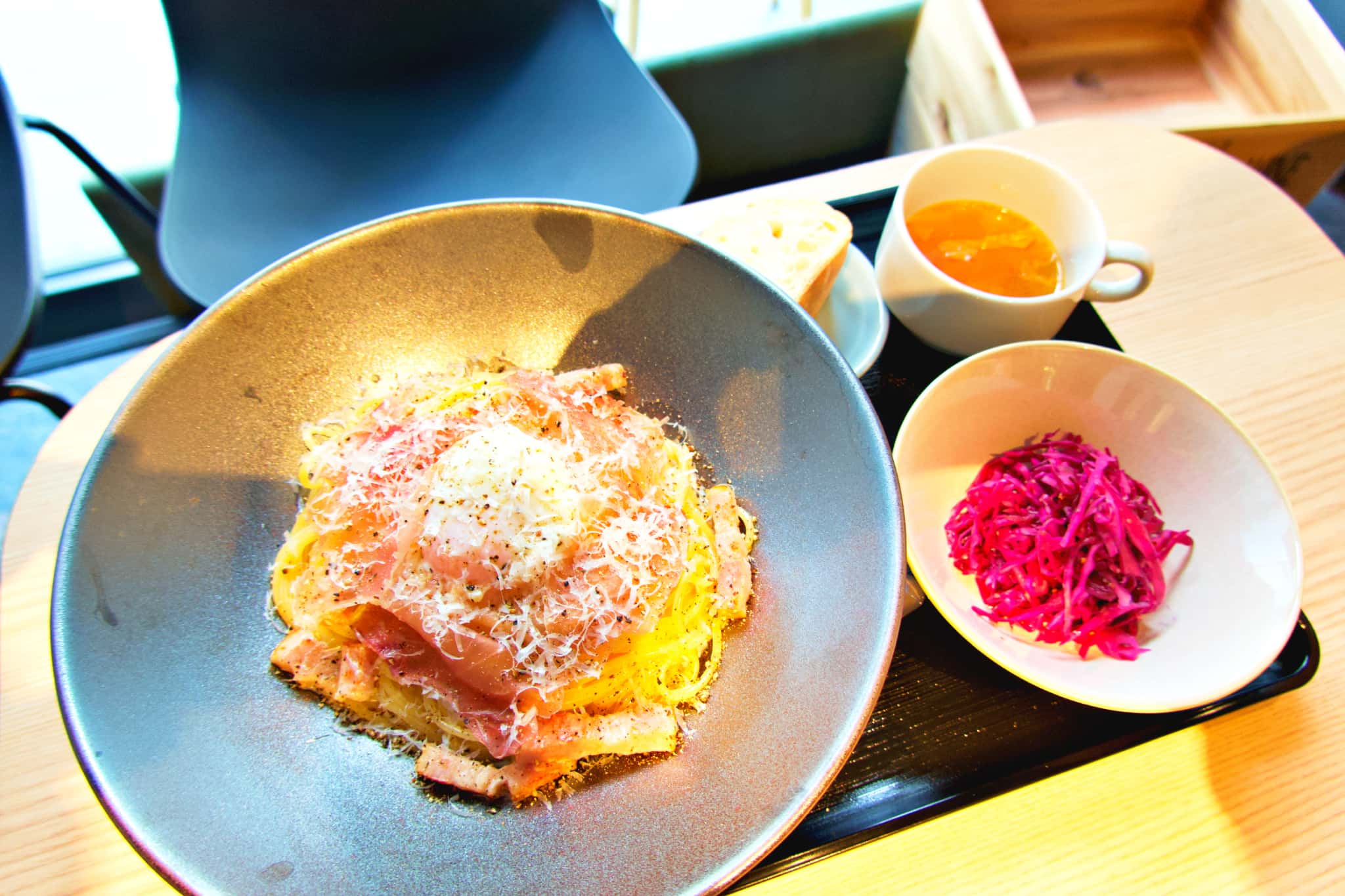 ランチタイムは「生ハムと半熟卵のカルボナーラ」(バケット、ミニサラダ、スープ付き)をはじめ、旬の食材を使ったパスタなどを味わえます。ディナーでは、切りたて生ハムのふんわり食感が魅力の「名物・極薄生ハム」や、「極上の坂越産 生牡蠣」がクラフトビールとの相性抜群!