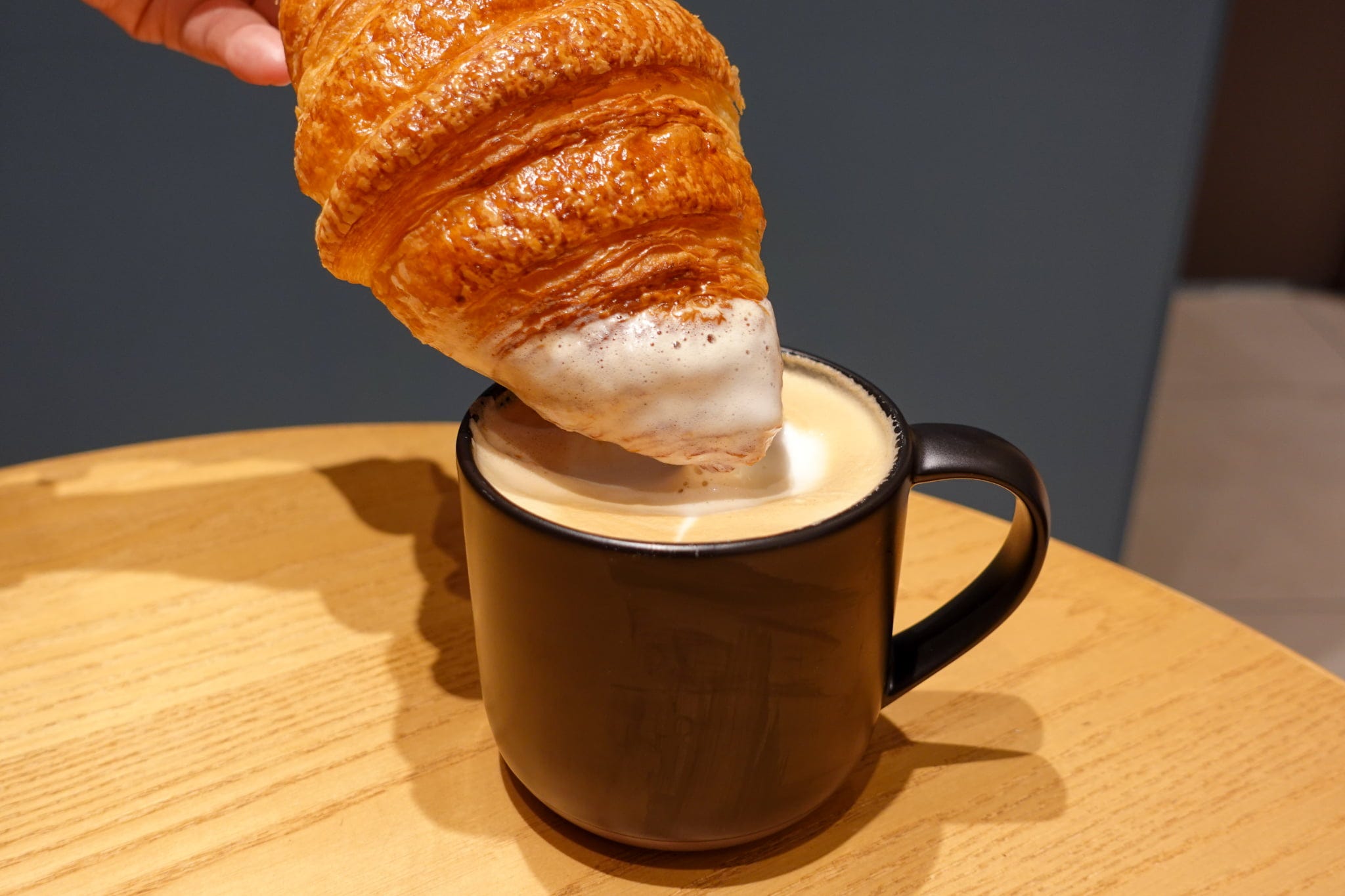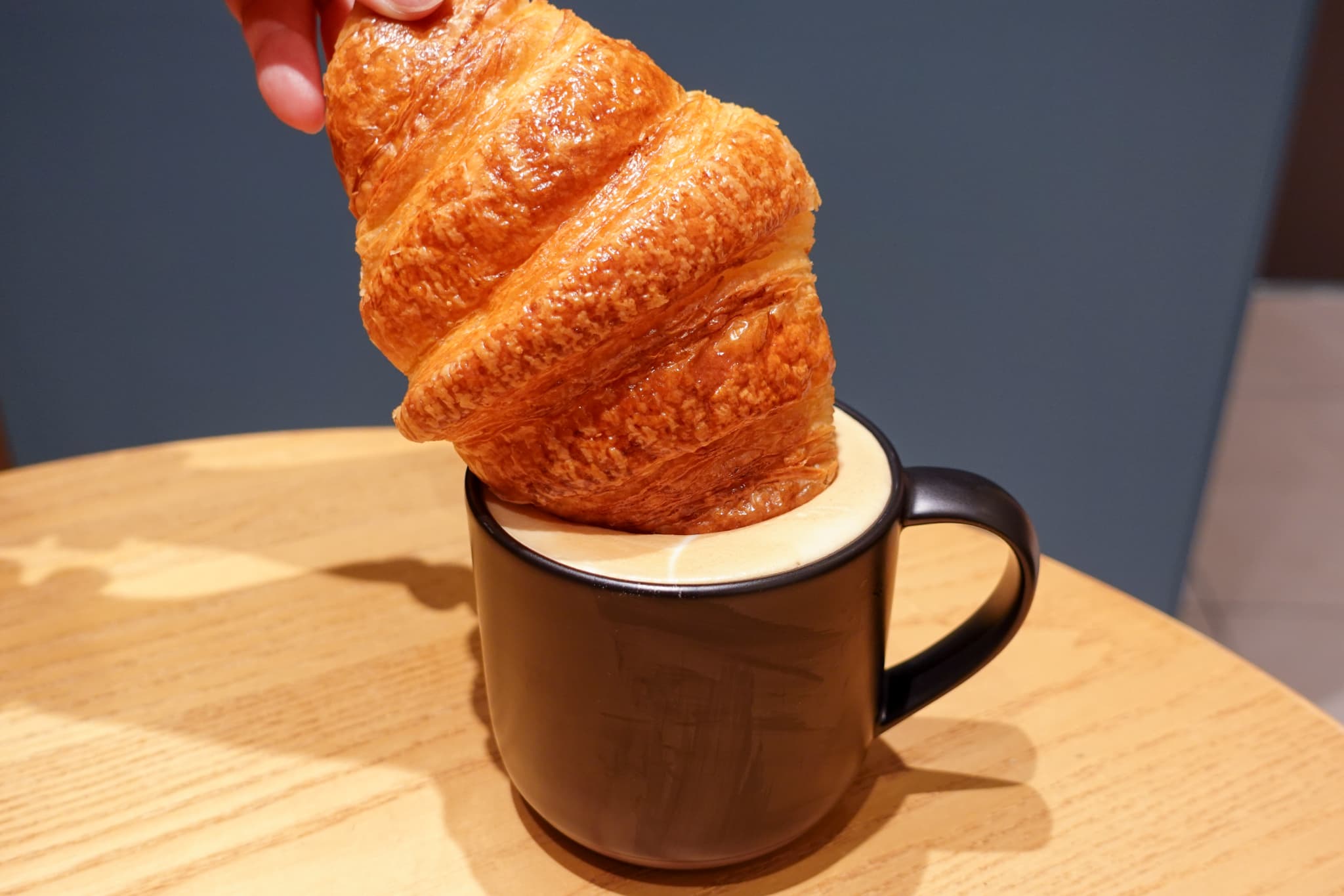 同店でもこのスタイルを提案しており、外はザクザクと香ばしく中はふんわり軽いコルネッティに、なめらかなミルクフォームがたっぷりのラテを合わせることで、口の中でやさしい甘みとコーヒーのコクが広がります。