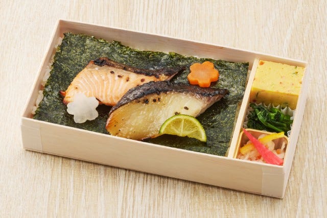四季の折詰 徳「紅白海苔弁~銀鱈西京焼きと鮭塩麹焼き~」(1折/1,570円)/銀鱈と鮭を使った紅白の海苔弁当。/地下1階 惣菜売場/販売期間:2026年4月22日(水)~5月19日(火)