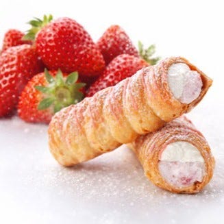 赤福 五十鈴茶屋「いちごコルネ和三盆クリーム」(1個400円)/“いちごピューレ×白あん”のクリームと上品な和三盆クリームを重ねた和洋仕立ての特別品。/地下1階 西ゾーン/販売期間:2026年5月6日(水・休)まで