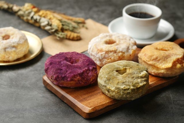 台湾菓子 万華 1220「台湾ドーナツ各種」(1個/381円~)/外はサクッと軽やかに、中はふんわりとした食感。「杏仁」は高島屋大阪店限定フレーバー。/地下1階 洋菓子売場/販売期間:2026年4月22日(水)~5月5日(火・祝)