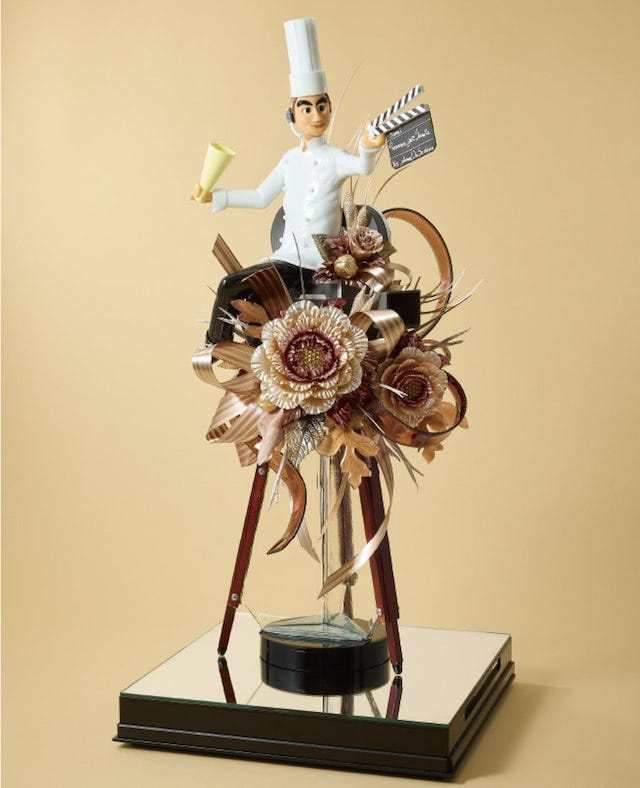 本イベントでは映画の日本初公開130年を記念して、「Welcome to Entertainment ~映画の世界~」をテーマに、「ケーキハウス ツマガリ」の工芸マイスター・岩佐康雄さんが製作した工芸菓子を展示。そのほか、「映画の世界」をテーマにした、今にも動き出しそうな作品の数々を楽しめます。