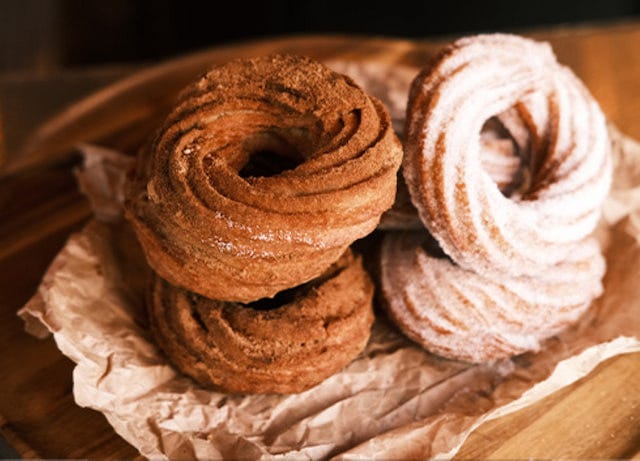 【初登場】「THE BAKE」の「きなこ」(1個/380円・写真左)、「シュガー」(1個/280円・右)※4月22日(水)・23日(木)・26日(日)・27日(月)出店 普段はなかなか購入できない、お取り寄せスイーツもラインナップ。店舗の営業は月に数回・売切れ次第終了というベーグル専門店「LOCCA BAGEL」が、4月25日(土)のみ登場します。さらに、ベーカリースタンド「THE BAKE」の「大丸神戸店」限定フレンチクルーラーに新フレーバーが仲間入り!