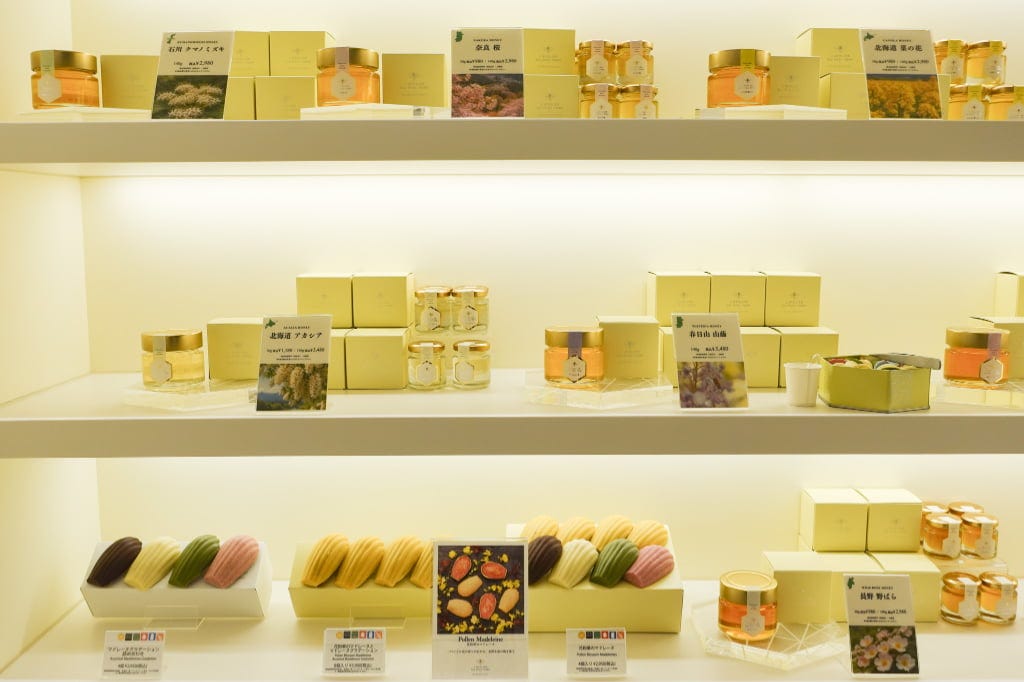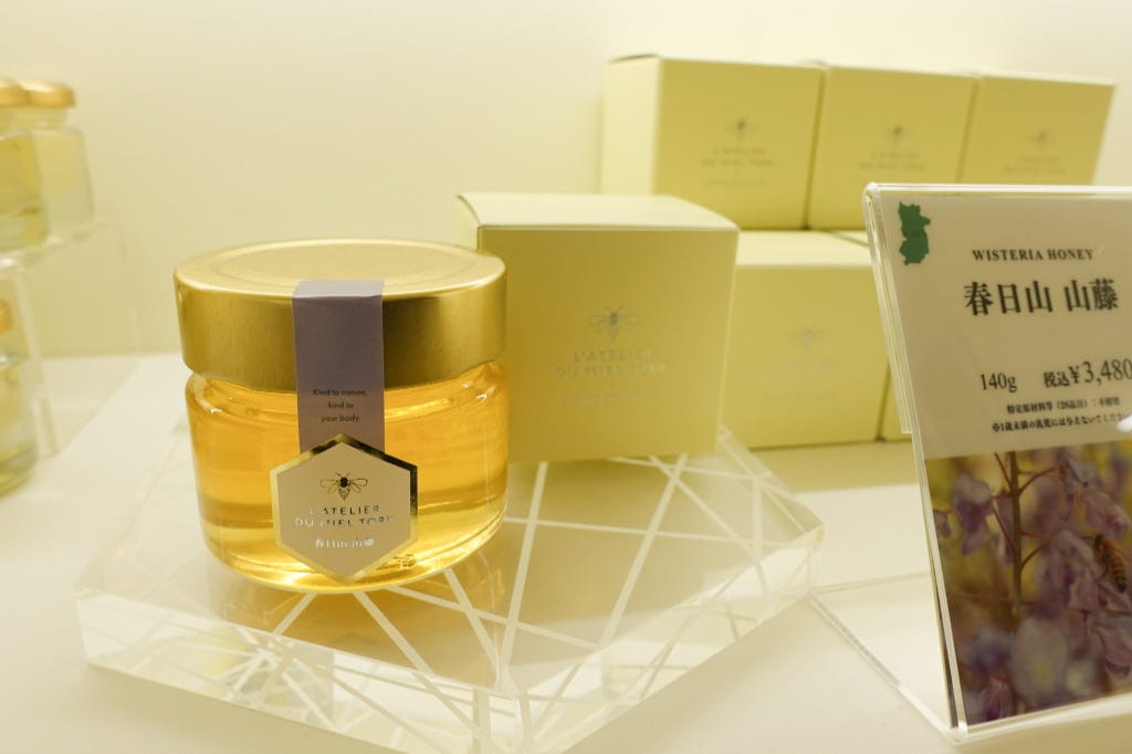 春日大社原始林の麓で自生する山藤の花や、桜の花から採取した貴重な蜂蜜もお目当てに。このほか、北海道やブルガリア産の蜂蜜なども揃います。