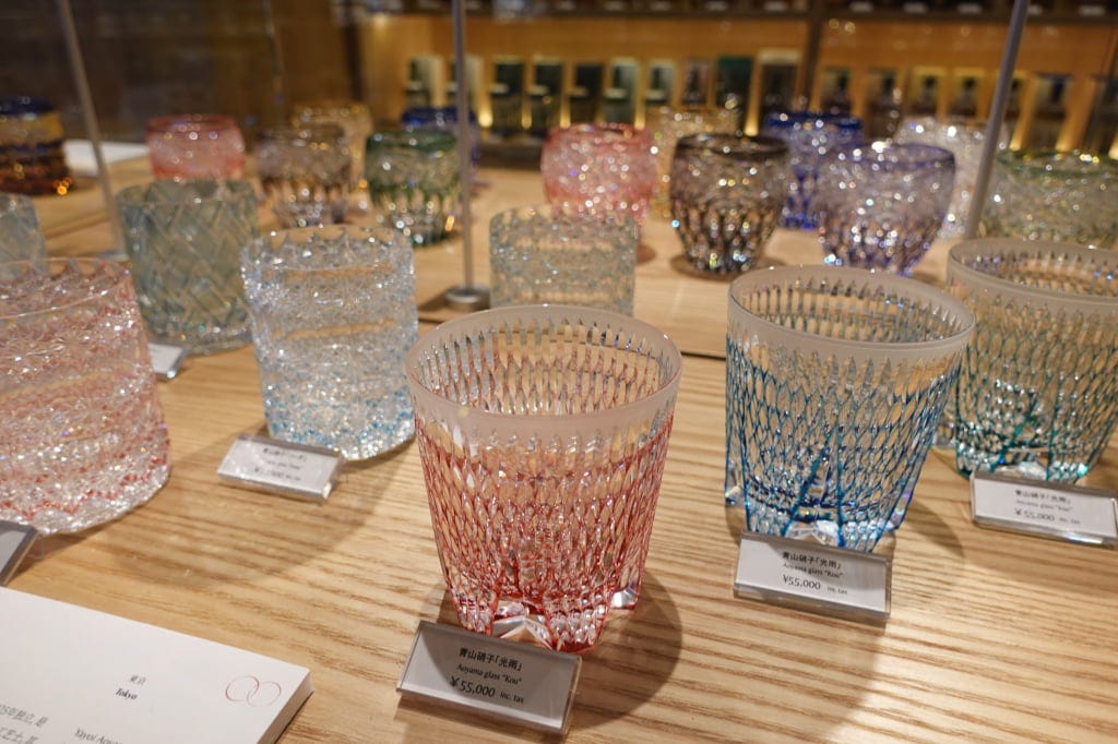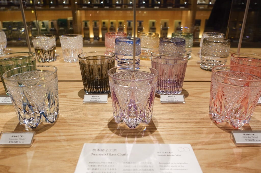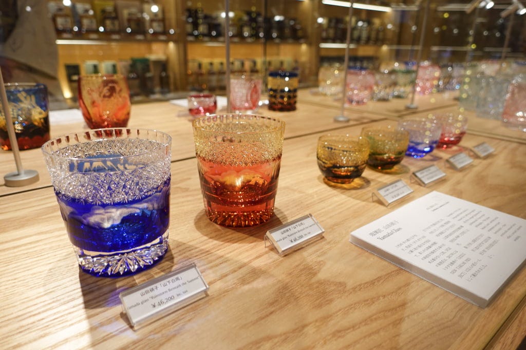 江戸切子の伝統工芸士による酒器も豊富に。若手女性作家の作品も並び、特別なプレゼントにふさわしい品揃えです。