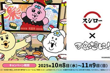 スシロー×可哀想に!が再コラボ、おぱんちゅうさぎ&新キャラ・んぽちゃむ降臨 前後半で変わる限定メニューやグッズ登場