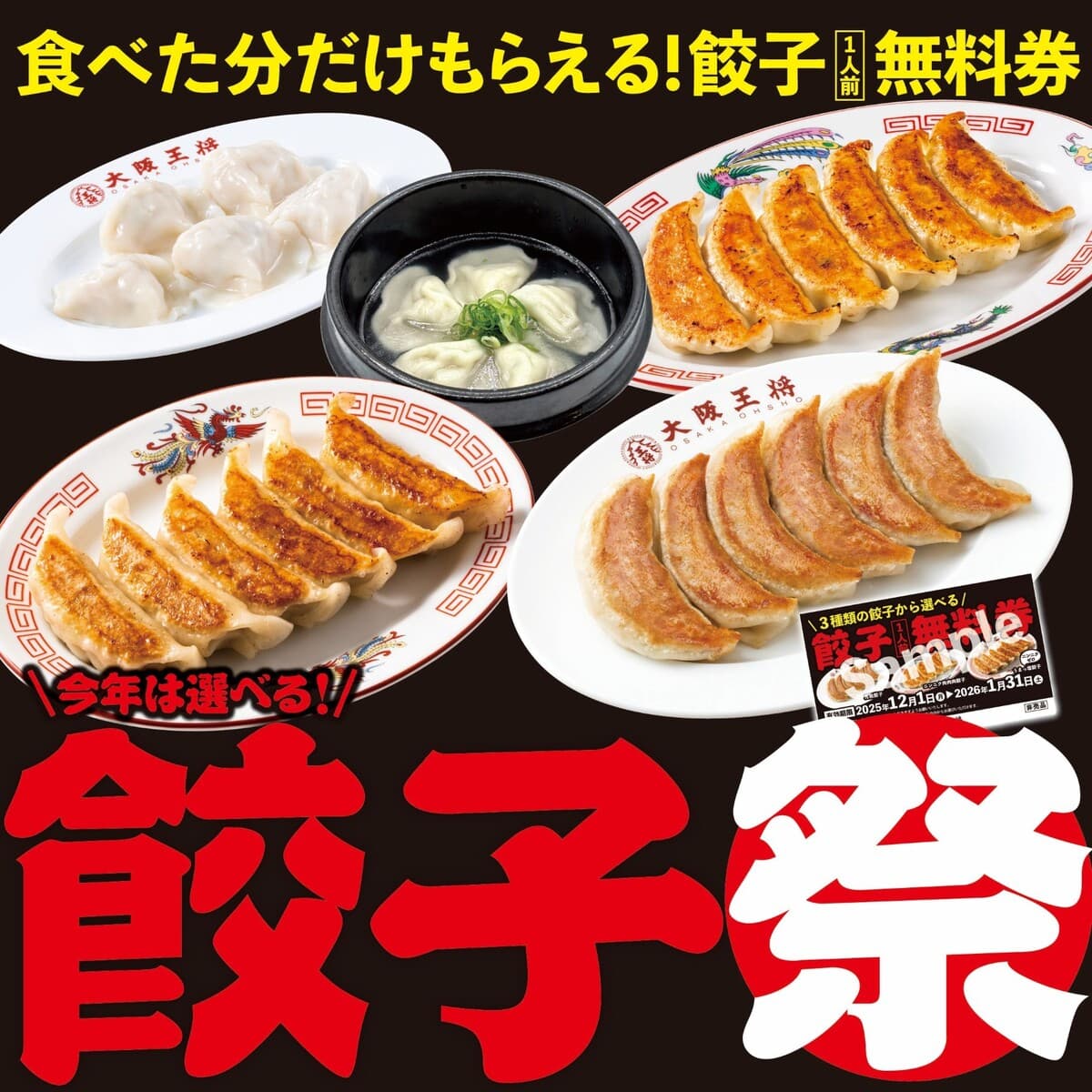 食べた分だけ「餃子1人前無料券」がもらえる!? 「大阪王将」で「餃子祭」が開催