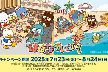 スシローがサンリオ「はぴだんぶい」と初コラボ、限定アイテム付きのすしやスイーツを提供