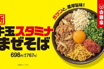 吉野家初の麺商品「牛玉スタミナまぜそば」7月4日より新登場 にんにくマシマシだれでピリ辛に“味変”