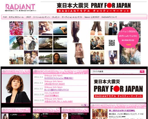 渋谷カルチャーのポータルサイト「RADIANT」所属の人気モデルが、渋谷系ファッション通販サイト「TOKYOおしゃれLife」にて地震被災者支援のためのチャリティーマーケットを開催している。