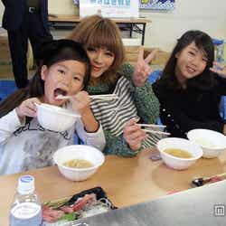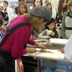 今回の魚さばき教室は、ギャルママに「家庭で魚を料理する機会を増やしてもらいたい」「街のお魚屋さんの魅力をもっと知ってもらいたい」という思いから、東京魚商業協同組合と共同で企画したもの。魚のさばき方やおいしい調理法・保存法をレクチャーすると共に、子供にも魚の美味しさを伝えることが狙い。人気ママモデルの宮下美恵、板橋瑠美も参加し、自分たちでさばいたアジの刺し身を子供たちと一緒に味わった。