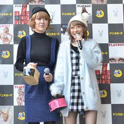 モデルでタレントの鈴木奈々が13日、都内で行われた「ドン・キホーテ×PLAYBOY」オリジナル商品発表会にものまねタレントのみかんとともに出席した。
