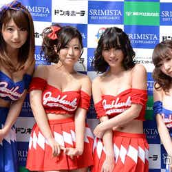 すると池田が、バストの前で手を合わせ、そのまま中心に向かって強く押す大胸筋の鍛え方を伝授。くみっきーもすぐさま真似してみせ、にこやかにその運動を行っていた。さらにバストアップに効く食べ物については、グラドル全員が「唐揚げ」と答えた。「唐揚げはみんな言いますね」との言葉にくみっきーは、「もう今すぐ食べます」と即反応し、報道陣を笑わせた。くみっきーのスタイルキープ