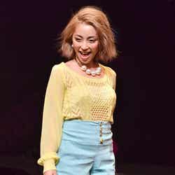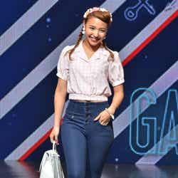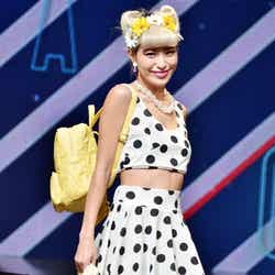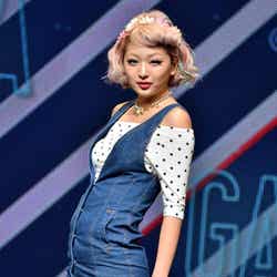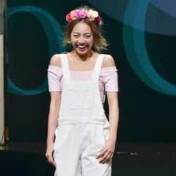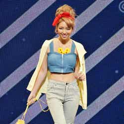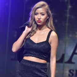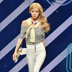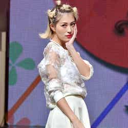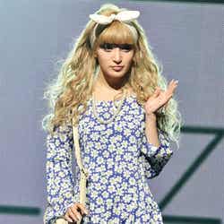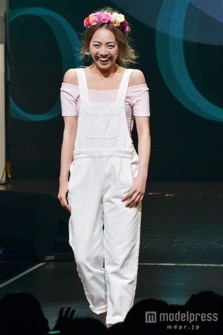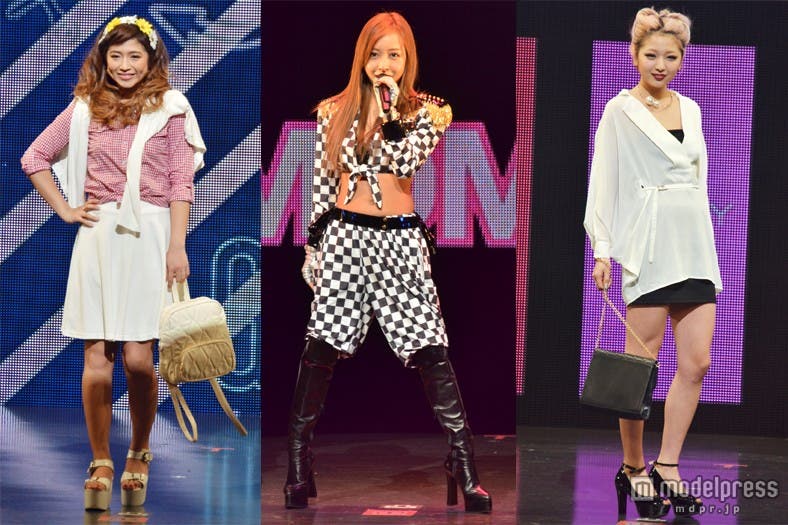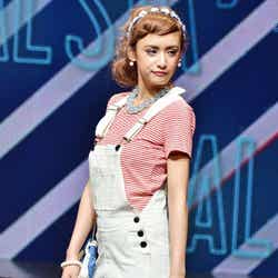オープニングを飾ったのは、雑誌「JELLY」で活躍する今井華。人気のギンガムチェックシャツに、ホワイトのサーキュラースカート、カーディガンを羽織って登場し、観客を熱狂させた。続いて、根本弥生、斉藤夏海ら人気ギャルモデルが次々に登場。スマイル全開のキュートなウォーキングに黄色い歓声があがった。板野友美、May J.がパフォーマンスで会場を魅了