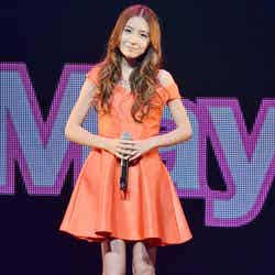 また、アーティストのMay J.は鮮やかなオレンジのワンピースで登場。公開中のディズニーアニメ映画「アナと雪の女王」の日本語版主題歌「Let It Go~ありのままで~」など3曲を熱唱。観客はその伸びやかな歌声に聞き惚れた。