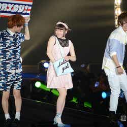 大倉とこんどうは「WEGO」ステージに、モデルの古関れんとともに出現。3人がランウェイを歩くと、女子からの黄色い歓声が鳴り響いた。ランウェイでは何度も投げキッスをするなど、ファンサービス満開の大倉、角を生やしたヘアスタイルで手を振り続けるこんどう、そして弾ける笑顔を見せる古関、3人のフレッシュなウォーキングに会場はたちまち熱気に包まれた。東京ガールズコレクション