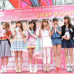この日、東京・渋谷109にて同誌によるSNAP撮影会が行われていた。そんななか、同誌モデルでアーティスト活動も行う“ぴかりん”こと椎名ひかりがサプライズ登場し、ゲリラライブを敢行。突然の登場に、ファンからは大きな歓声が上がっていた。「とろあまちゅ」「リアルリア充(仮)」の2曲を歌い終えると、なんと同誌モデルたちがステージ上に突然駆けつけた。現れたのは“くみっきー”こと舟山久美子、“みずきてぃ”こと西川瑞希、“まあぴぴ”こと松本愛、“まえのん”こと前田希美、“だこちゃん”ことダコタ・ローズ、“みにゃとっち”こと小堀美茄冬、“れなれな”こと武田玲奈の7人。同誌人気モデルの豪華サプライズ集結に、ファンからは悲鳴にも似た歓声があがった。トークショーを開催