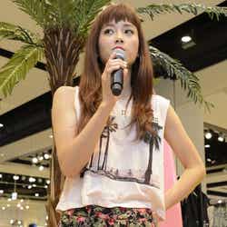 トークショーでは、カリフォルニアを感じさせるビビットピンクの水着にヤシ柄トップス、フラミンゴ柄ショートパンツのサマービーチコーディネートでヘルシーに肌見せ。この夏は長かった前髪をバッサリと切り、思い切ったイメチェンに挑戦したという彼女。「髪型を変えてこれまでにない服を着るようになり、シンプルな服も似合うようになりました」と笑顔を見せた。(モデルプレス)