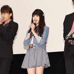 19日、都内で「劇場版仮面ライダー鎧武 サッカー大決戦!黄金の果実争奪杯!」の初日舞台挨拶が行われ、志田や佐野岳をはじめ、豪華キャスト陣が集結した。
