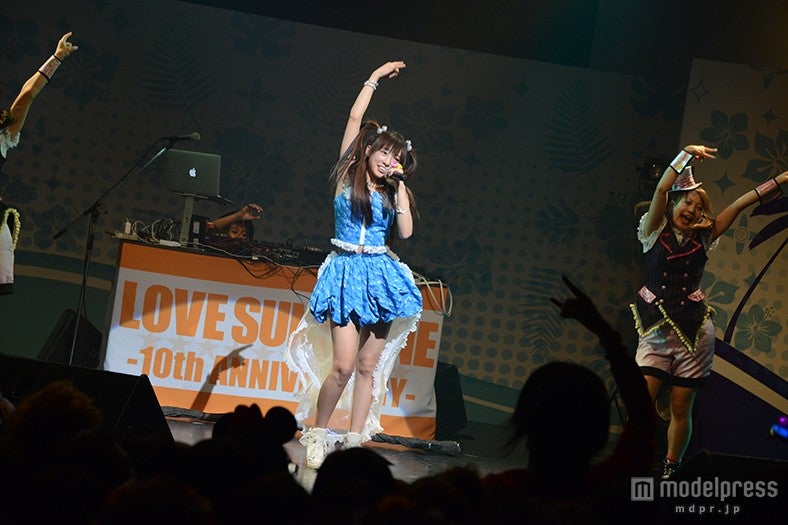 15日、東京・Shibuya O-EASTにて開催中のギャル界の一大イベント「LOVE SUNSHINE 2014」(通称:ラブサン)に出演し、ライブパフォーマンスを行ったぴかりん。この日は、ツインテールにブルーのミニワンピといった衣装で登場し、歓声が沸き起こる中で1曲目にデビュー曲「侵略ぴかりん伝説☆」を元気いっぱいに歌唱した。
