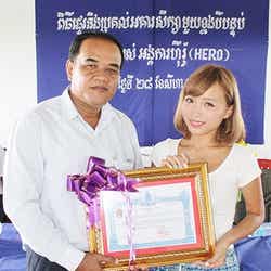 開校式が行われた中学校では、日本文化を伝える一環として、女子生徒たちにヘアーメイクやネイルを体験してもらい、男子生徒にはけん玉やべーごま、竹とんぼをプレゼント。また、インスタントカメラでの写真撮影なども行い、現地の子どもたちと打ち解け、交流を図った。開校式にはたくさんの人が集まってちょっとしたお祭り状態だったという鎌田。「子どもたちがカンボジアの国歌を歌ってくれたり、何もかもが新鮮で、とても貴重な経験をさせて頂きました」と振り返っている。ほか、シェムリアップ市内の孤児院を訪問。子ども達から歌とダンスの歓迎を受けた後、ここでもヘアーメイクやネイル、日本のおもちゃを体験してもらったそうで「男の子にと持って行ったけん玉や竹とんぼは女の子にも好評で、みんなで楽しいひと時を過ごすことが出来ました」と思い出を語った。
