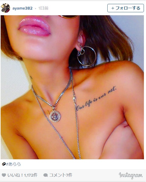 5日、自身のInstagramにて、こんがり日焼け肌の美ボディをのけぞらせ、片手でバストを包みこむ妖艶な大胆手ブラショットを公開。艶めかせたリップとともに、谷間をチラ見せし色気全開に悩殺した。さらに胸元により近づいたショットも続けて公開しており、ファンを興奮に包んだ。