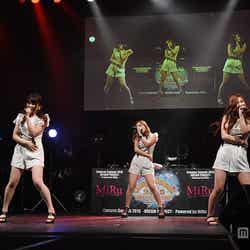 ホワイトのショートパンツのオールインワンで美脚をあらわに、ファンの歓声を浴びながら登場した3人。「READY GO!!」では飛び跳ねるようなキュートなダンスで魅了し、会場から「可愛い!」の声が溢れた。