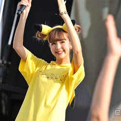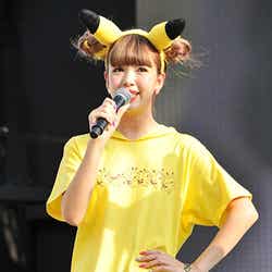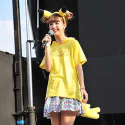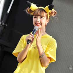 また、この日のファッションのポイントを聞かれると「後ろもパーカーになっていて、これ1枚でピカチュウになり切れる服と、ダンスっぽいイエイイエイな柄のパンツを合わせて、髪の毛も黄色のエクステを編み込ませてピカチュウを意識してきました」と紹介し、ご満悦な様子だった。(modelpress編集部)