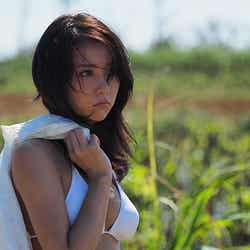 読者からの熱いラブコールを受けて雑誌の“顔”とも言える表紙&巻頭を獲得した石川。「ビリギャル」表紙でおなじみの金髪ギャル姿から一転、清楚な黒髪にイメージチェンジを遂げた石川は、美しい景色の広がる沖縄で、ぐっと大人っぽく洗練された美貌とストイックに鍛え上げられたプロポーションを存分に披露している。