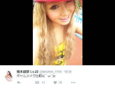 てんちむは「ギャルメイク比較」とコメントし、過去のガングロギャルメイクの写真と現在の雑誌「小悪魔ageha」でのギャルメイク写真を公開。日焼けした小麦肌は色白肌になっており、アイメイクもしっかりと目の周りを囲んだメイクから、少し控えめにしている。