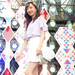 「Ranzuki」専属モデルの“ほのちぃ”こと大和屋穂香は、キャミソールのオールインワンで爽やかなリゾートファッションを披露。フレッシュな笑顔で魅了した。