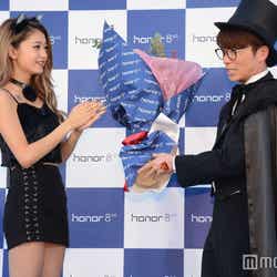 雑誌「Popteen」モデルの“みちょぱ”こと池田美優が26日、都内で行われた「honor 8 T&T ハロウィンイベント」オープニングイベントに出席。お笑いコンビのオリエンタルラジオ・藤森慎吾からのサプライズプレゼントに大照れした。