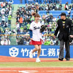 藤田ニコル、ミニスカユニフォームで初始球式「もう1回やりたい」