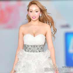 美バストがあらわになったミニ丈ドレスでランウェイをウォーキングし、大きな歓声を浴びた。