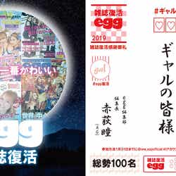 同誌は、WEB版「egg」公式Twitterの「このツイートが1万RT達成すれば、5月にeggが雑誌で復活します!」という企画において、わずか2時間程度で目標の1万リツイートを達成。2019年5月1日発売(予定)に向け編集・制作する運び(発行・発売:大洋図書)となっている。渋谷を中心とした数々のギャルカルチャーを生み出し、最盛期には50万部を誇った同誌。2014年6月に2度目の休刊となったものの、2018年3月よりWEBにて3度目の活動を再開し、SNSを中心に最適化した新たなギャルカルチャーを発信している。