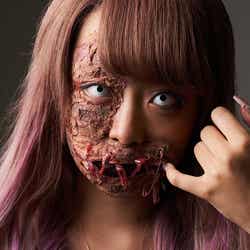 さらに同特集では、不気味でリアルなハロウィンメイクのテクも細かく解説。「ゾンビメイク」では、つけまのりでティッシュを顔に張り付け、その上からファンデーションとアザの色のアイシャドウを乗せることで、ゾンビの皮膚を再現した。口のまわりの部分には安全ピンやビニールひもを通し、さらに気味悪さがアップ。「口裂けメイク」では、真っ赤なリップライナーと口紅で皮膚を塗りつぶし口裂け顔に。思わず度肝を抜かす仕上がりに。