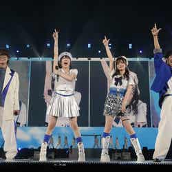 まずスカイピースは、青と白を基調とした爽やかな衣装姿で 「Sexy Dance FLOOR」、 「感謝感謝」とギャップの際立つ2曲を披露。 「東京ドーム元気ですか~!」と呼びかけ「美味しいヤミー!感謝感謝」と動画内でのお決まりのフレーズを観客と一緒に披露する場面もあった。その後は、まあたそとかすもステージに登場し、青春☆しゅわしゅわクラブとして 「あお」をフレッシュさたっぷりに。最後はゆうたを迎え、コラボレーションソングで、苦境や困難に立ち向かっていく姿を歌う夏にぴったりな爽やかな楽曲「向かい風」 を歌い上げた。「向かい風 feat.コムドットゆうた」は1月24日に発売された5th Album「FEVER」に収録されている、コムドットのゆうたとの初のコラボ楽曲となっている。歌いだしを担当したゆうたは、歌唱後のMCで「めちゃめちゃ緊張感ありました」と率直に心境を明かしていた。