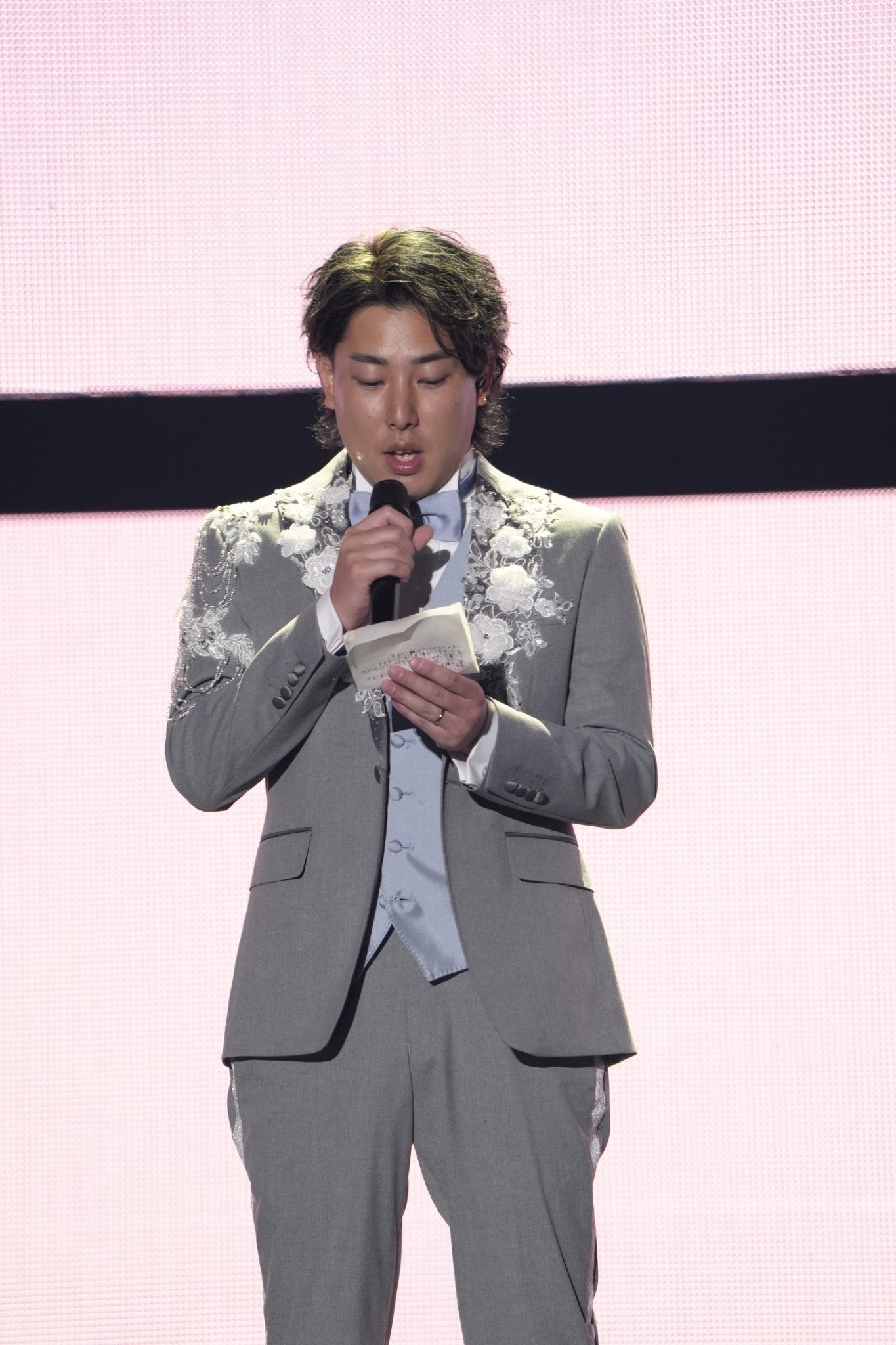 この日、タキシード姿で登場したはんくんは「この度は、どうしてもみんなに伝えたいことがあり、この場を作ってもらいました。僕、ESPOIR TRIBEはんくんは結婚します」と発表。会場がどよめく中、「彼女は僕がどんなにしんどい時でも支えてくれて、どんな時も背中を押してくれて、一緒に過ごしてきて、僕にとって本当にこの人しか居ないなと思いました」とお相手について紹介した。すると、ウエディングドレス姿のるなが登場。はんくんからバラの花束を受け取ったるなは「急な報告になったんですけど、このたび結婚させていただく森元流那です」と挨拶し、結婚の決めてについて「私にないものを持っていて、何かあればすぐに背中を押してくれるところが、すごく私にとって心強い存在になっていました。次第にこの人と一緒に居たいなと思うようになったのがきっかけです」と理由を明かした。